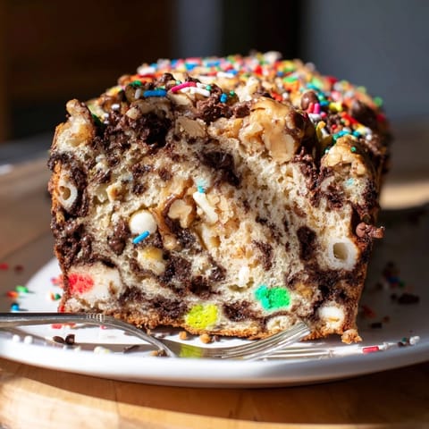 Whimsical loaf swirled with peanut butter, packed with chocolate chips, sprinkles, nuts, and gooey marshmallows.