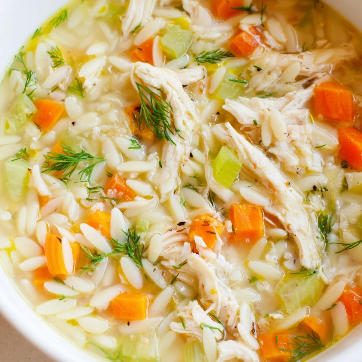 - Orzo pasta: Tiny rice shaped pasta that soaks up the broth and makes every spoonful satisfying.