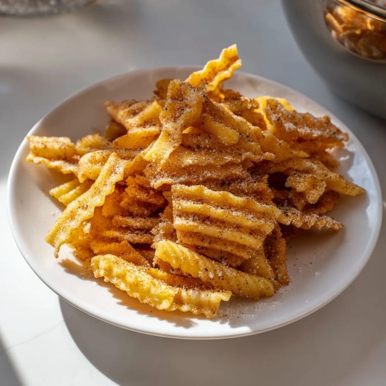 Save Crispy baked pasta chips tossed with a flavorful blend of seasonings, perfect for snacking or serving with dips.