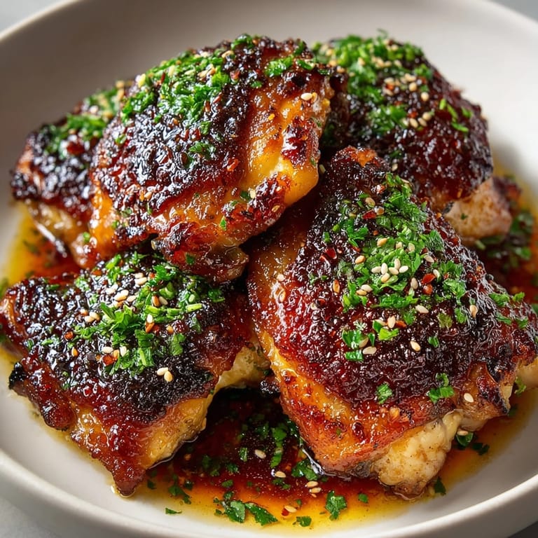 Save This sticky-sweet honey garlic chicken has become my go-to recipe when I need to impress without spending hours in the kitchen. The combination of caramelized honey and garlic creates an irresistible glaze that transforms ordinary chicken thighs into something truly spectacular.