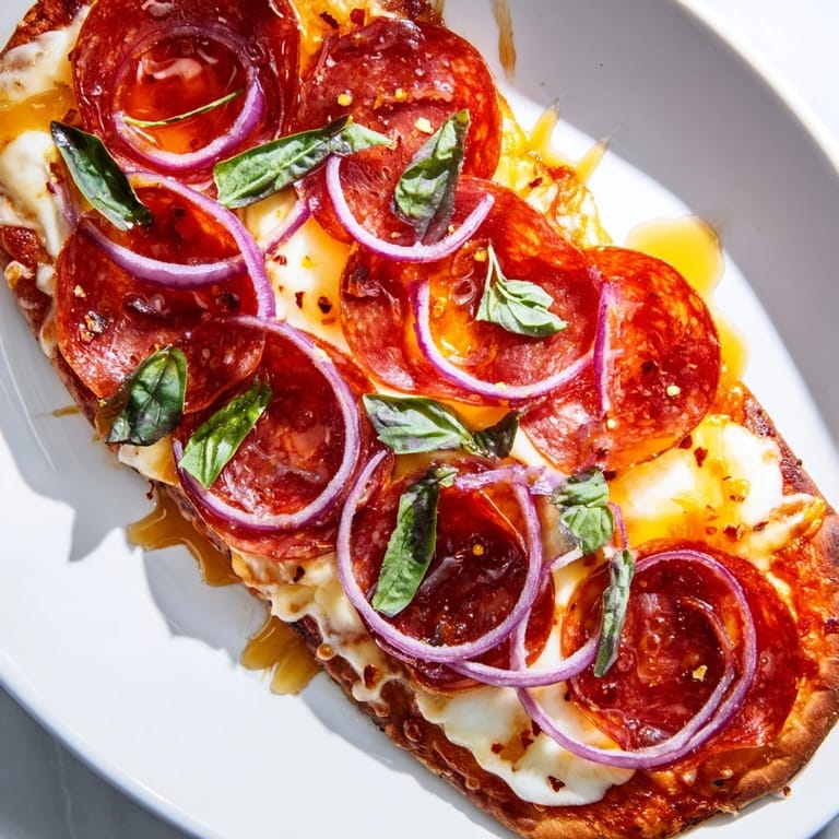 Save My coworker brought hot honey pepperoni flatbread to a Friday lunch once, and I watched it disappear in minutes—people were actually fighting over the last slice. That sweet-heat combination just stops you mid-bite, and suddenly you're chasing that perfect balance of crispy, gooey, and spicy all at once. I realized right then that this wasn't just pizza dressed up differently; it was the kind of casual dinner that makes everyone feel like you actually tried.