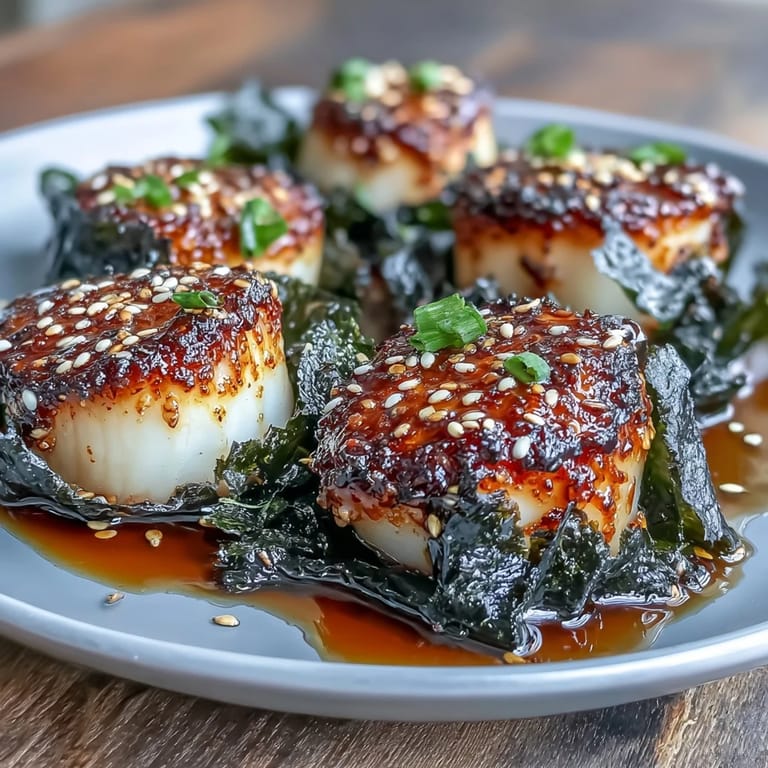 Save A friend once handed me a plate of these seaweed-wrapped scallops at a dinner party, and I was genuinely surprised by how something so elegant could come together in under thirty minutes. The nori crackled between my teeth while the scallop stayed buttery and tender inside, and the ponzu sauce cut through everything with this bright, almost playful zing. I went home that night determined to figure out how to make them myself, mostly because I couldn't stop thinking about that contrast of textures.