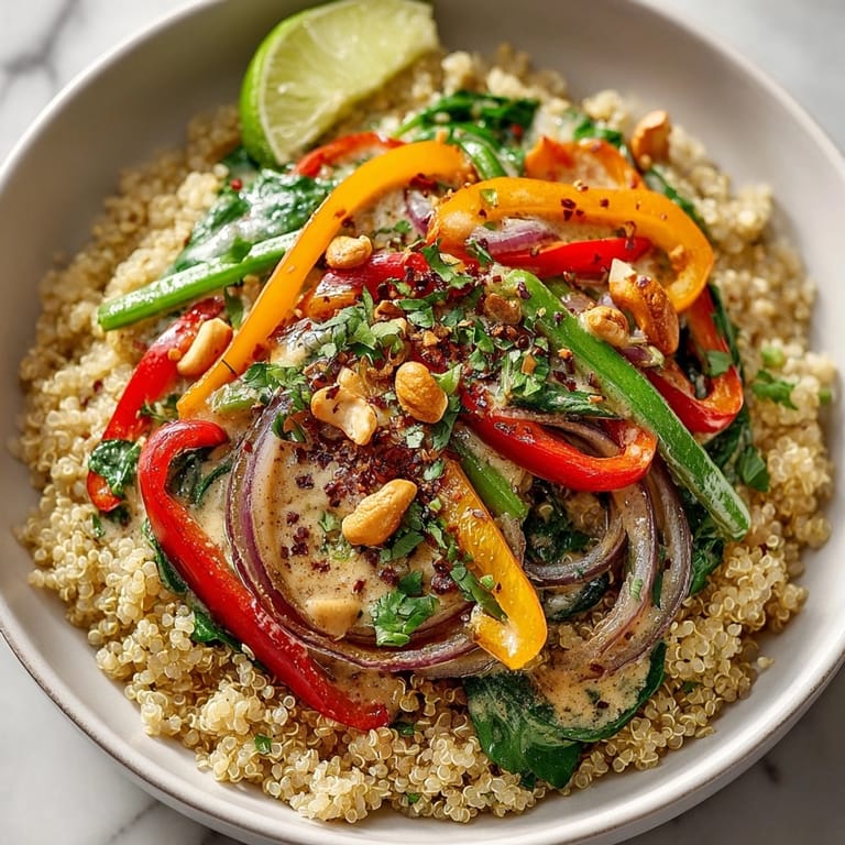 Save This Thai Curry Quinoa Bowl recipe brings together fluffy quinoa, crisp tender vegetables, and a creamy coconut curry sauce for a meal that is bold, wholesome, and deeply satisfying without being heavy. It was a go-to weeknight dinner during my busiest teaching years because everything comes together quickly and is always met with empty bowls and happy faces.