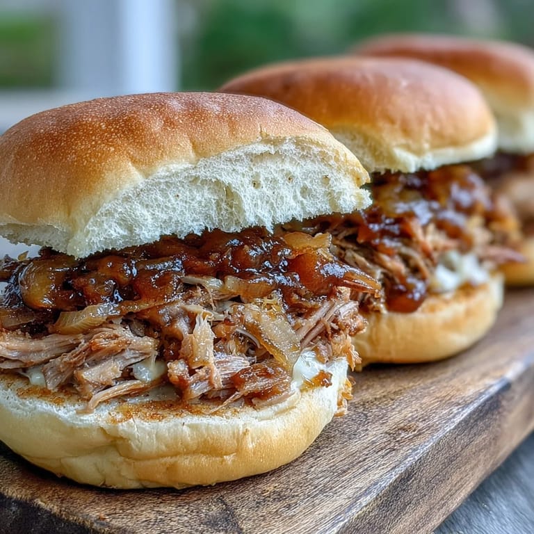 This slow cooker pulled pork combines tender pork shoulder with a unique applesauce-based sauce featuring apple cider, brown sugar, and warm spices. After 8 hours of low-heat cooking, the meat shreds effortlessly and absorbs the sweet-savory flavors. Serve on sandwich buns with optional coleslaw for a comforting meal that feeds six. Perfect for busy weeknights or casual gatherings, this dairy-free dish requires minimal hands-on time.