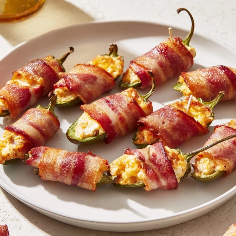 Spicy jalapeños filled with creamy cheese, wrapped in crispy bacon, ready in under 40 minutes.