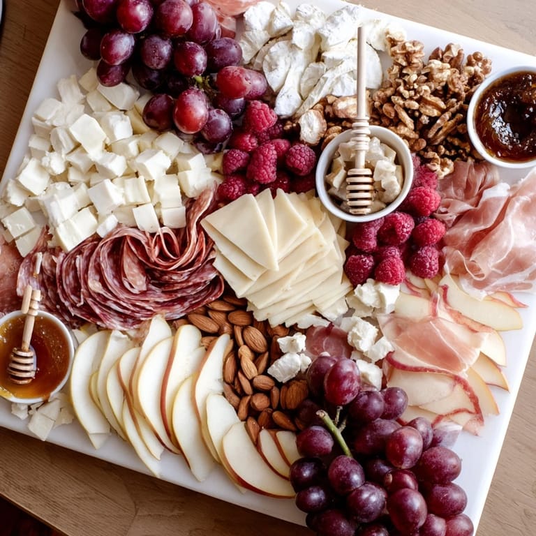 - Garnish the board with edible flowers or fresh herbs (such as thyme or rosemary) for a final elegant touch.