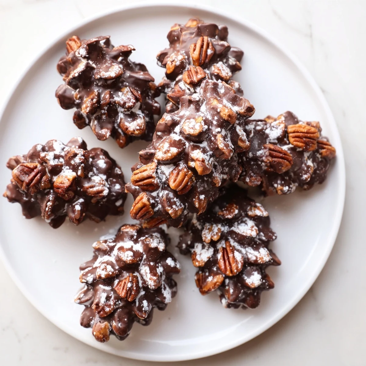 This elegant treat combines toasted almonds and pecans with dark and milk chocolate, mixed with crisp cornflakes for a delightful crunch. Shaped like pinecones and lightly dusted with powdered sugar, these clusters bring a whimsical, rustic element to any gathering. Ready in just over half an hour, they offer rich flavors and textures with minimal effort. Ideal for holidays or cozy moments, they can be customized with nuts or seeds to suit your preference.