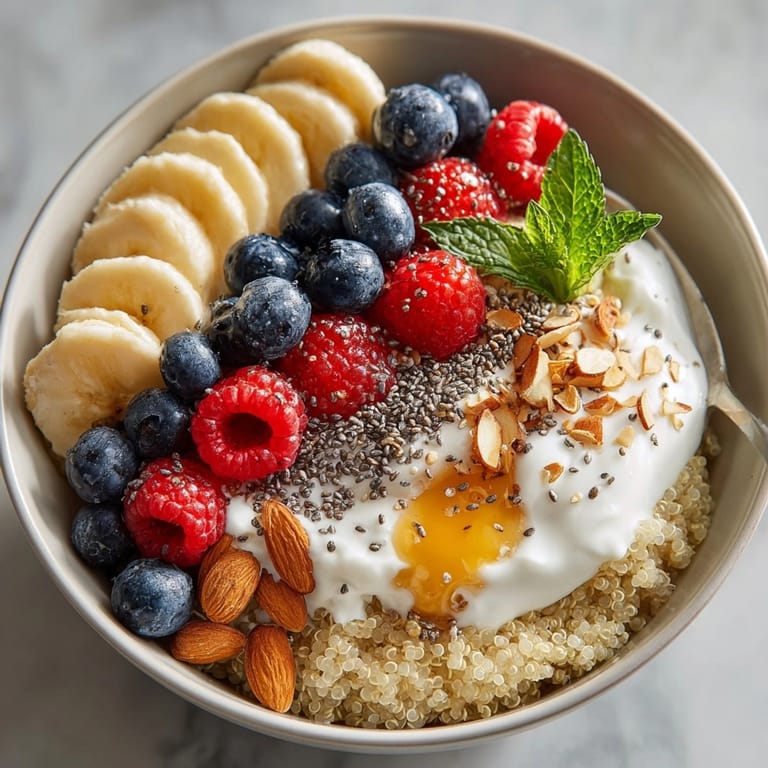 Save This protein-rich quinoa breakfast bowl is my favorite way to kick off busy mornings when I want something satisfying yet quick. It is packed with complete protein from quinoa and Greek yogurt plus fresh fruit and a nutty crunch so you get fuel for hours—and it comes together in under half an hour.