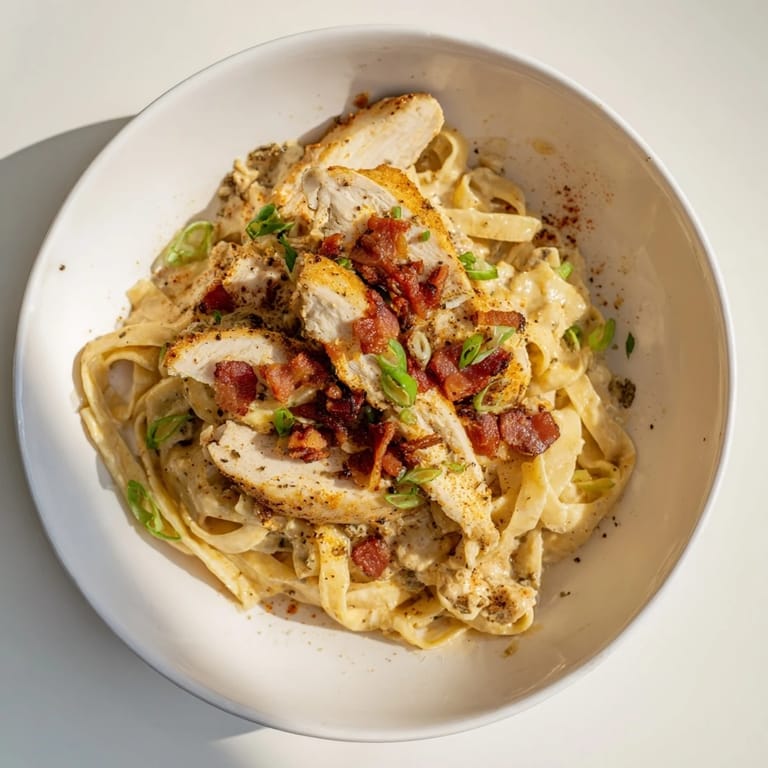 - Garnish: 2 strips bacon cooked and crumbled (optional), 2 green onions sliced, ¼ cup fresh parsley chopped, Red pepper flakes (to taste), Fresh cracked black pepper (to taste)