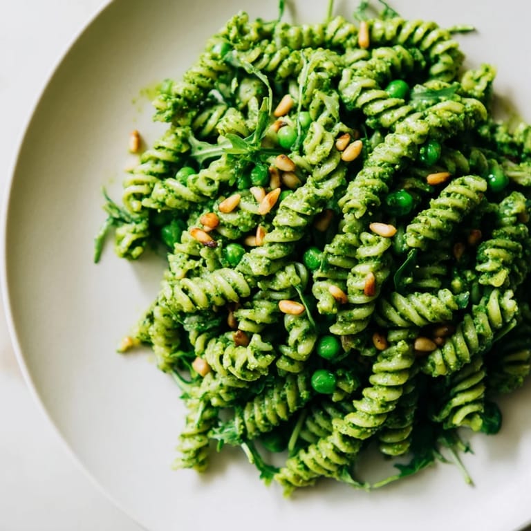 Save My neighbor handed me a basket of just-picked basil over the fence one April morning, more than I could possibly use before it wilted. I stood there holding armfuls of green, wondering what to do, when I remembered a pasta salad I'd had at a potluck years ago. By noon, my kitchen smelled like summer, and I had a bowl of bright green pasta that tasted like spring itself. That basket of basil became this recipe, and now I make it every time the weather turns warm.
